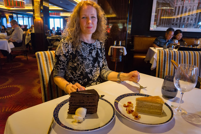 Tonight its Cagney's - our second restaurant of choice with NCL. Again its good to see some changes have been made to the menu though here there is obviously still a big emphasis and bias towards meat. Dessert as you can see is still as obscene as ever as are the steak sizes ;)