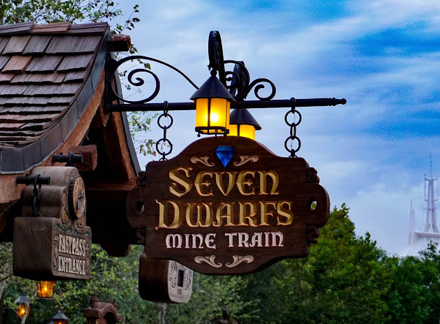 The plan today is to take advantage of Magic Kingdoms EE in the morning then head over to Studios for the afternoon where we already have all our Fast Passes in place. The gates are just opening as we arrive so heading straight for Fantasyland we walk on to the Seven Dwarfs Mine Train - its pretty much the big queue generator here now (along with that old classic Peter Pan) so my advice would be to have a FP in place if you're staying in this park - or just get here early on an EE and do them back to back. I do like the ride - it's nicely themed and has some great animatronic pieces but a bit more BTM please. Unfortunately a couple of the set pieces are invisible - it was so humid and warm overnight, that at this time in the morning everything is dripping with condensation on the outside of the buildings so you cant see inside the glassed off areas.